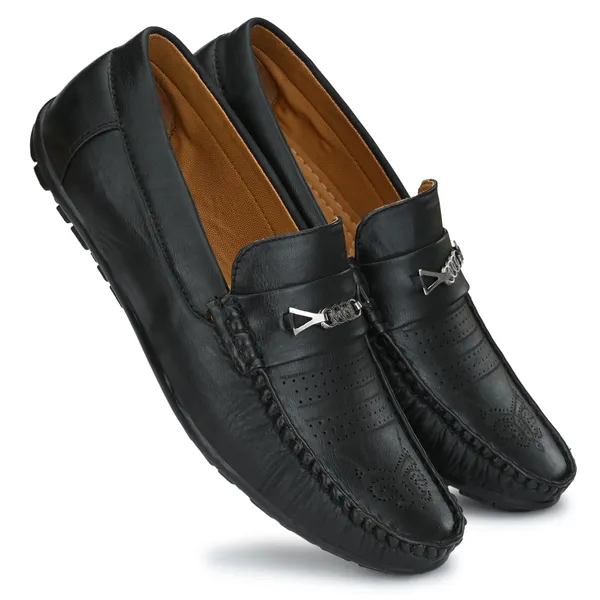 Black Leatherette And Airmix Slip On Loafers For Men