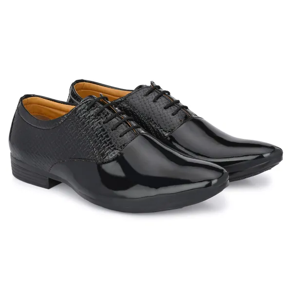 Black Patent Leather And Pu Lace Ups Derby For Men