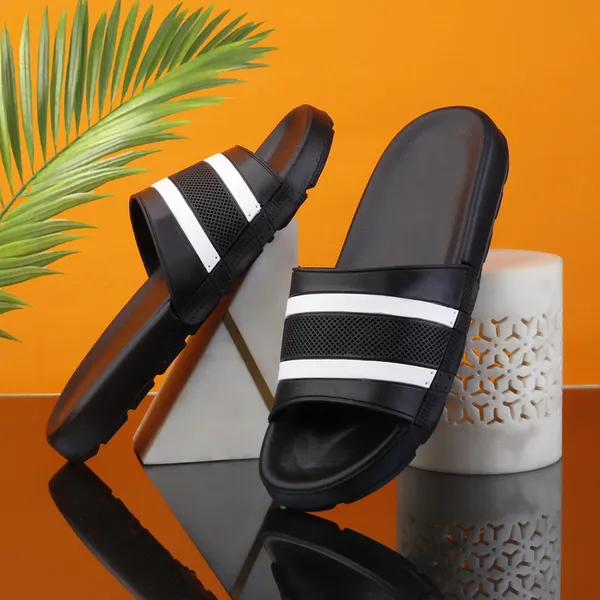 Black Silicon Strap And Eva Slip On Sliders For Men