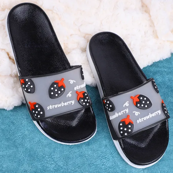 Black Silicon Strap And Pvc Slip On Sliders For Women