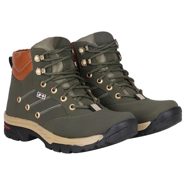 Dark Green Leatherette And Airmix Lace Ups Boots For Men