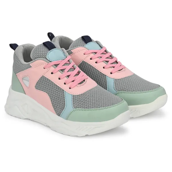 Grey Mesh And Airmix Lace Ups Sports Shoes For Women
