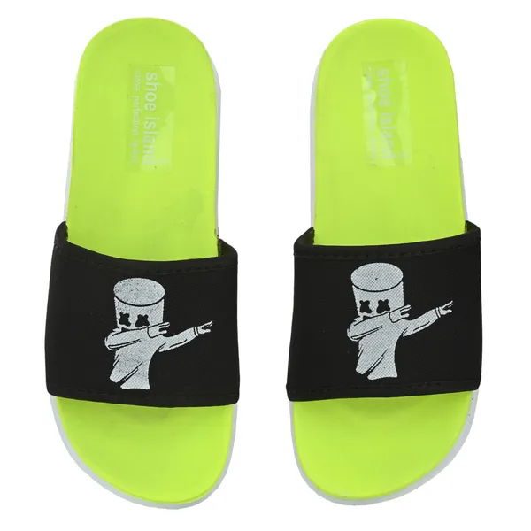 Neon Green Silicon Strap And Pvc Slip On Sliders For Men
