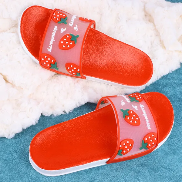 Red Silicon Strap And Pvc Slip On Sliders For Women