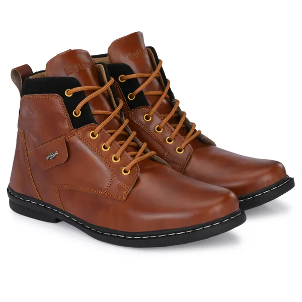 Tan Brown Leatherette And Airmix Lace Ups Boots For Men