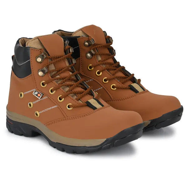 Tan Brown Leatherette And Airmix Lace Ups Boots For Men