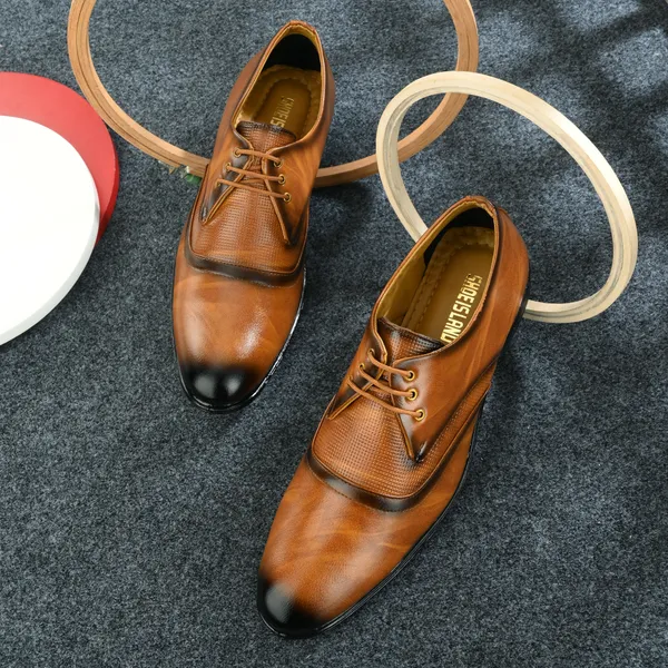 Tan Brown Leatherette And Pu Lace Ups Derby For Men
