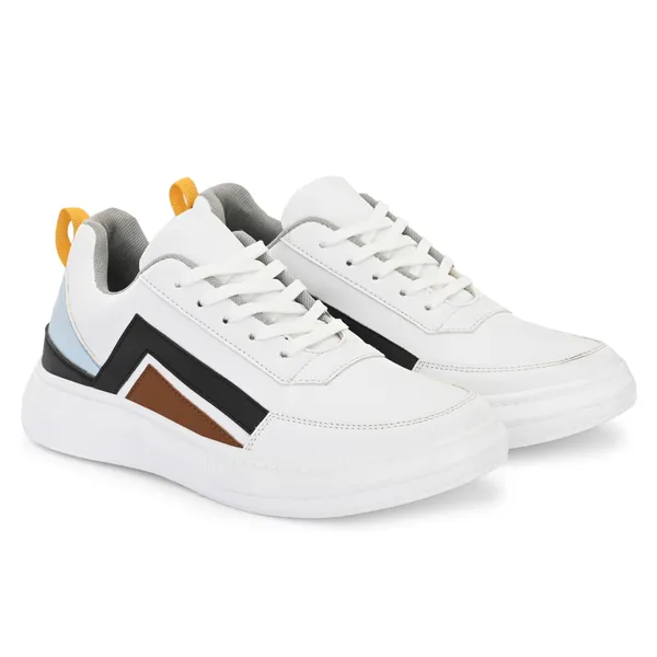 White Leatherette And Airmix Lace Ups Sneakers For Men