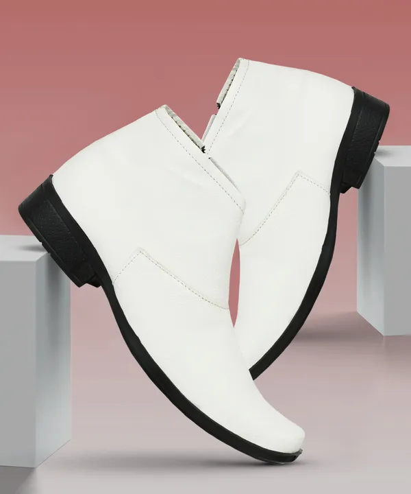 White Leatherette And Pu Zipper Boots For Men